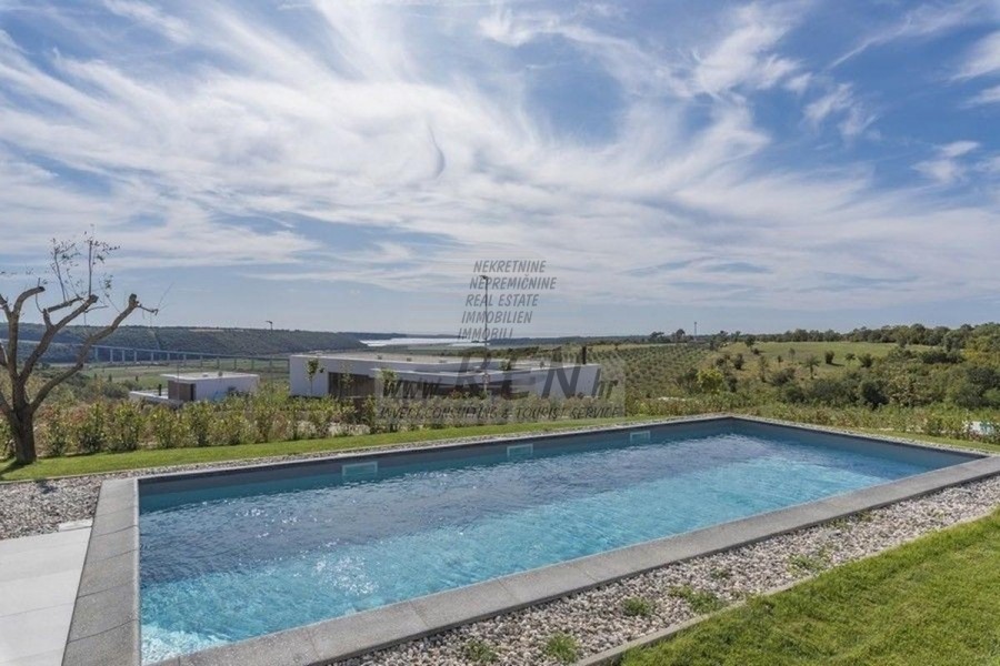 La villa dispone con un totale di 220 m2, terreno 1000 m2, è a 10 min. (8km) dal mare e dalle splendide spiagge naturali, 10 min. (10km) dista dal centro di Novigrad-Cittanova. La casa è composta dal piano terra e seminterrato. Ci sono in totale 5 camere da letto, 4 bagni, WC, cucina, soggiorno, deposito. La casa è dotata di parcheggio privato, terrazzo sul tetto, terrazzo 40 m2, piscina, cucina estiva, vista sul mare.